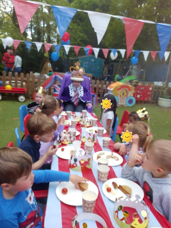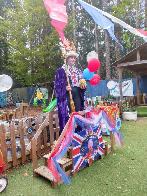 On 5 May 2023 we all celebrated the Coronation of King Charles III in style with a Garden Party. After a worryingly horrible week of wet weather, we were blessed with a glorious afternoon for our children, their families and our "royal" guest!
